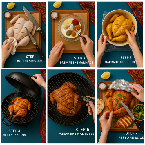 - Oven method: No grill? No problem! Bake the marinated chicken in a preheated oven at 400°F (200°C) for 50-60 minutes, flipping it halfway through. Broil for 3-5 minutes at the end to get that beautiful golden color.