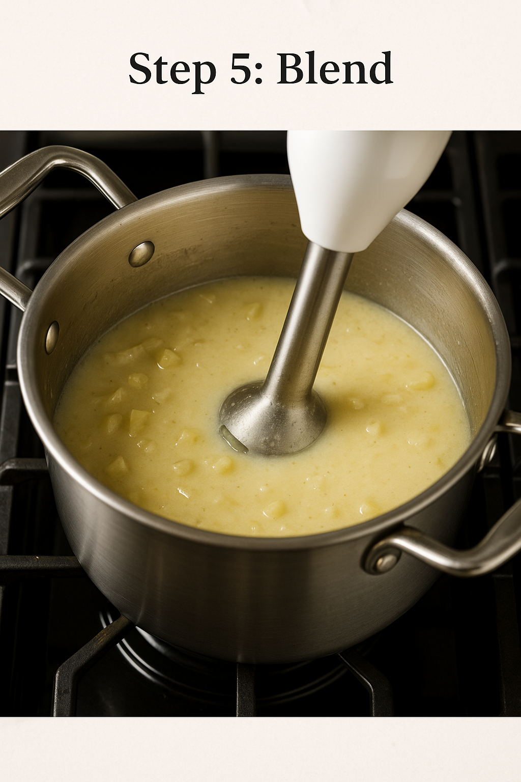 Carefully blend soup with an immersion blender until creamy. For extra safety when blending hot soups, follow these immersion blending tips.